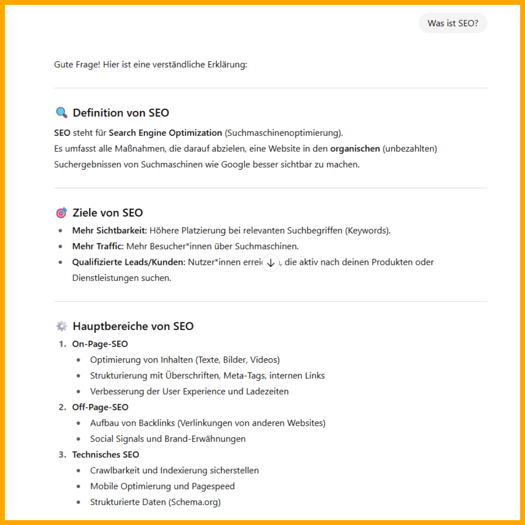 SEO ist also ein zentraler Hebel, um in generativen KI-Antworten sichtbar zu werden.